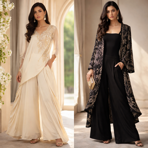 indo western , stunnig , light colours or black could also go, not aunty types old age