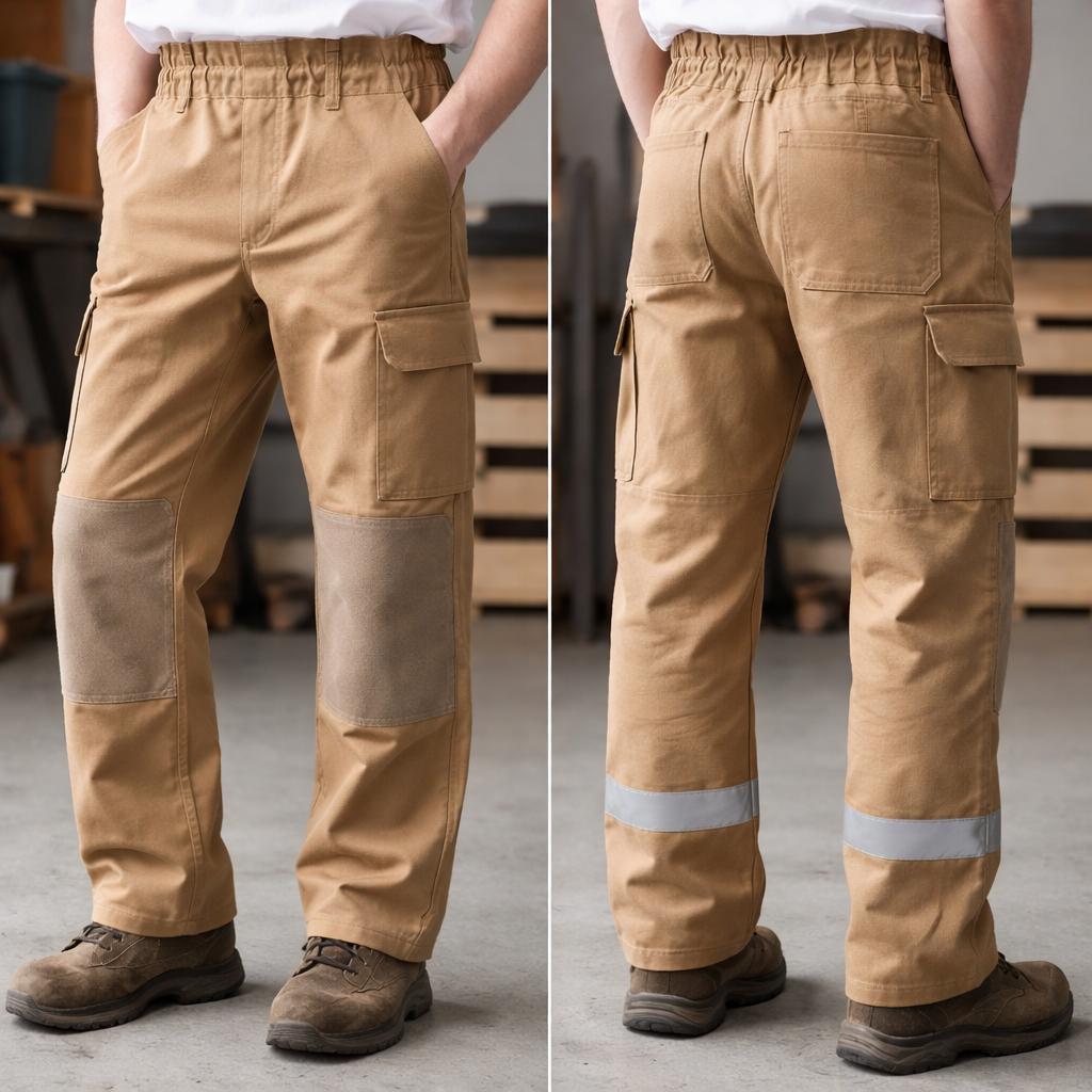 Создай брюки спецодежды для токаря. Брюки предназначаются для человека с большим животом т.е. с отсутствующей талией. Сд...